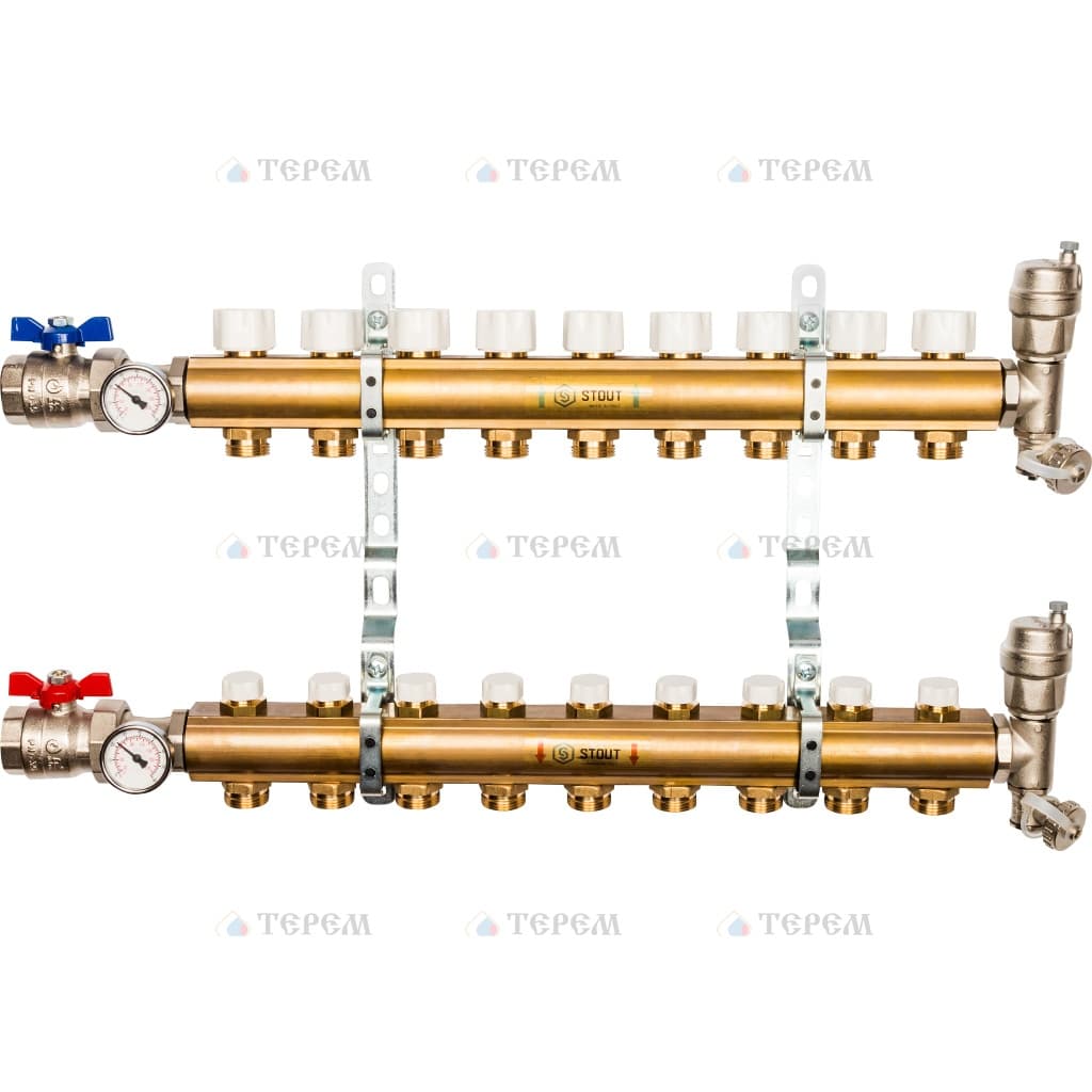 STOUT Распределительный коллектор из латуни без расходомеров 9 вых.