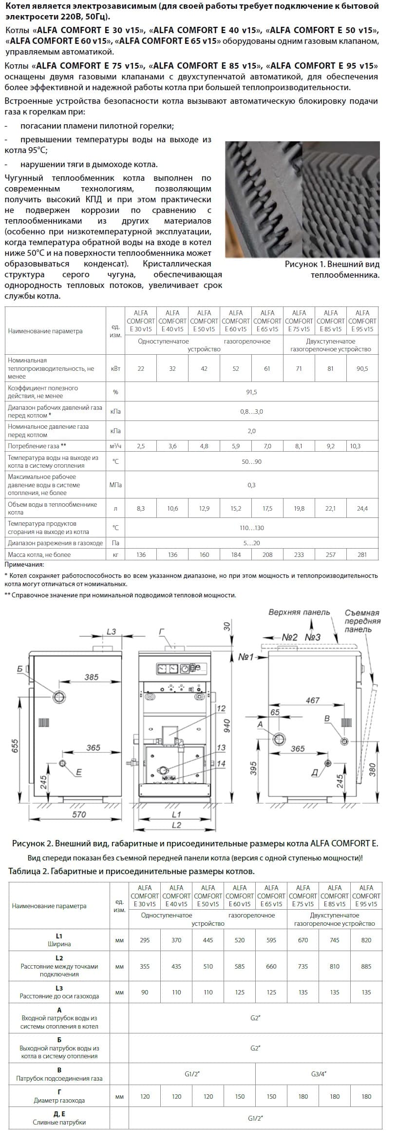 Котел напольный чугунный газовый ACV Alfa Comfort E 65.