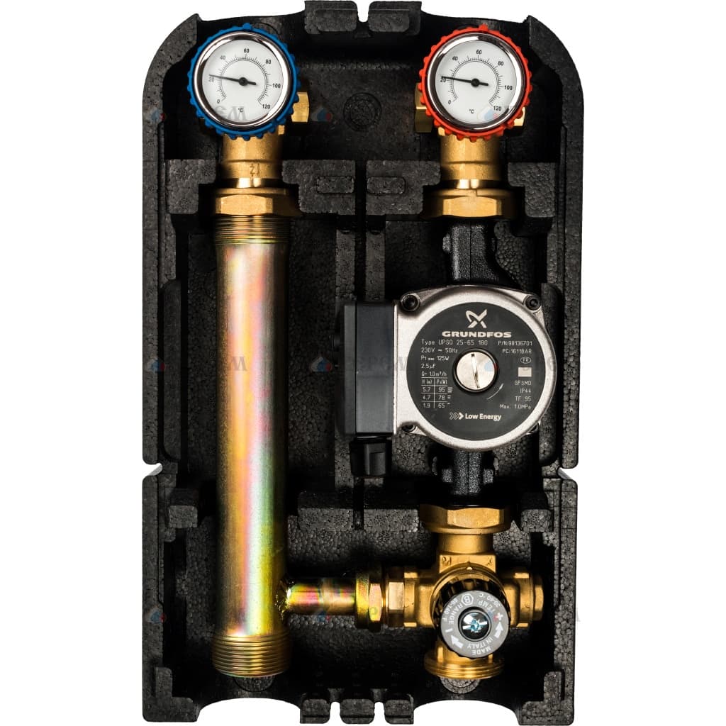Насосная группа с термостатическим смесительным клапаном (автономное поддержание температуры в подающем контуре 30-60°C).